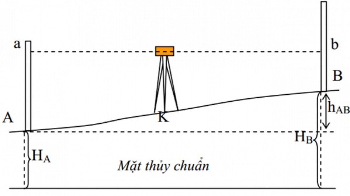 - Phương pháp đo thủy chuẩn (Leveling): Đây là phương pháp đo đạc truyền thống và phổ biến nhất để tính độ cao địa hình. Các kỹ sư sử dụng máy thủy bình để xác định sự chênh lệch giữa các điểm trên mặt đất, từ đó tính toán độ cao của từng khu vực so với mặt nước biển hoặc các mốc đo chuẩn. Trong quá trình đo đạc, các kỹ sư sẽ thực hiện đo đạc ở nhiều điểm khác nhau và ghi nhận sự chênh lệch độ cao giữa các điểm này.
