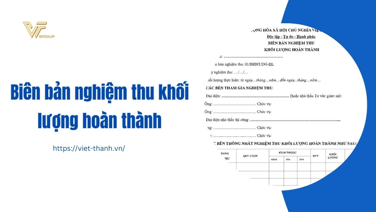 Mẫu biên bản nghiệm thu khối lượng hoàn thành là biểu mẫu văn bản được tạo ra để ghi chép lại toàn bộ nội dung trong quá trình nghiệm thu khối lượng hoàn thành. Vậy nội dung có trong biên bản nghiệm thu khối lượng hoàn thành gồm những gì? Hãy cùng Việt Thanh Group tìm hiểu qua bài viết dưới đây.