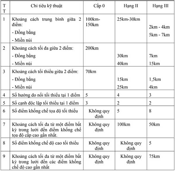 - Lưới thiết kế tọa độ hạng III: Lưới thiết kế phải được đo nối với ít nhất 8 điểm tọa độ quốc gia có độ chính xác từ hạng II trở lên. Trong đó, 4 điểm bố trí tại các góc và ít nhất 1 điểm bố trí tại trung tâm của lưới. Đồng thời, đo nối với tất cả các điểm tọa độ cấp 0 và tọa độ hạng II khác có trong phạm vi xây dựng lưới.