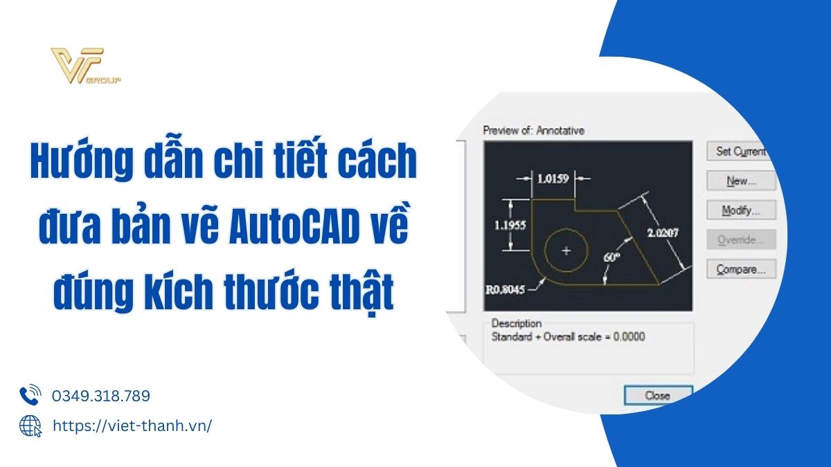 Trong thiết kế và xây dựng, việc chuyển đổi bản vẽ AutoCAD về đúng kích thước thật vừa giúp đảm bảo tính chính xác của bản vẽ mà còn giúp tối ưu hóa quá trình sản xuất và thi công. Trong bài viết dưới đây, Việt Thanh sẽ hướng dẫn chi tiết cách đưa bản vẽ AutoCAD về đúng kích thước thật, giúp bạn thực hiện công việc này một cách hiệu quả nhất. Cùng tham khảo và thực hiện nhé.