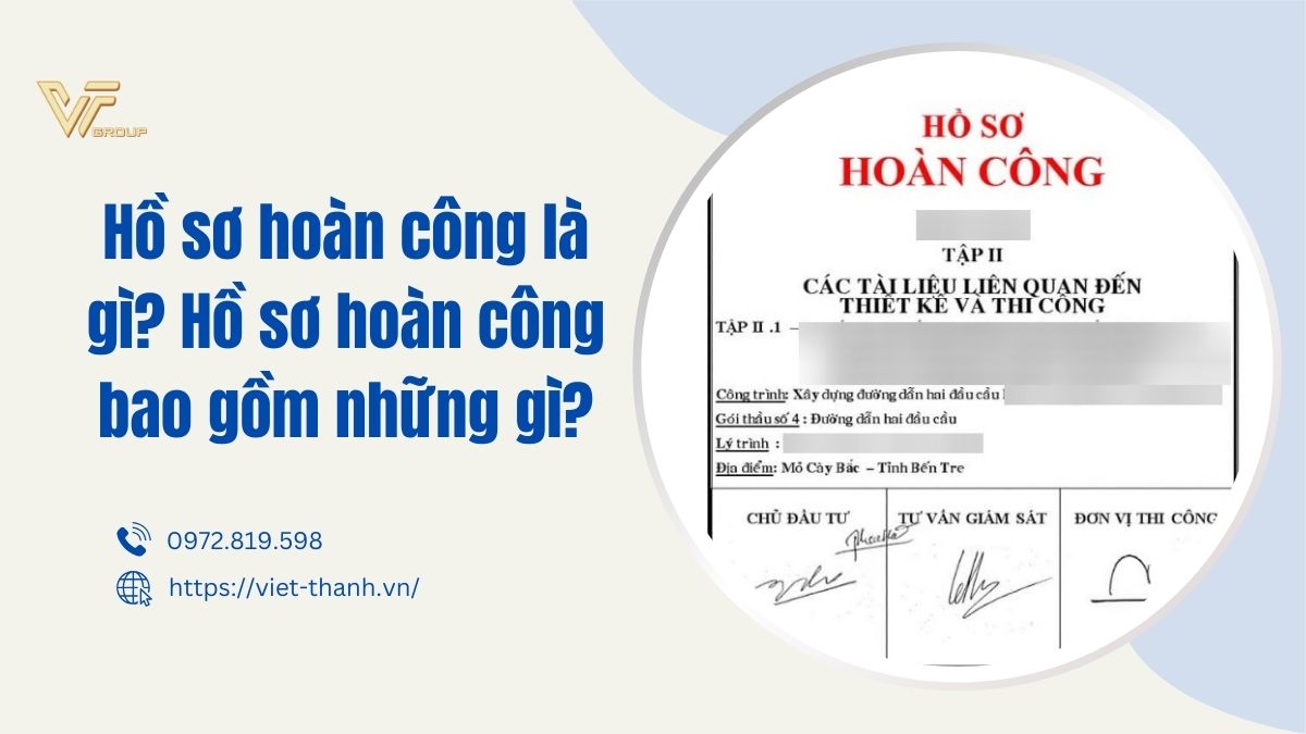 Hồ sơ hoàn công được hiểu là những tài liệu, những giấy tờ được lưu trữ lại trong suốt quá trình thi công xây dựng công trình bao gồm cả những phê duyệt của dự án, bản khảo sát, bản thiết kế,… Nói cách khác là tất cả các giấy tờ trong quá trình xây dựng công trình. Trong bài viết dưới đây Việt Thanh Group sẽ mang đến câu trả lời chi tiết cho câu hỏi hồ sơ hoàn công là gì? Hồ sơ hoàn công bao gồm những gì? Mời bạn cùng theo dõi.