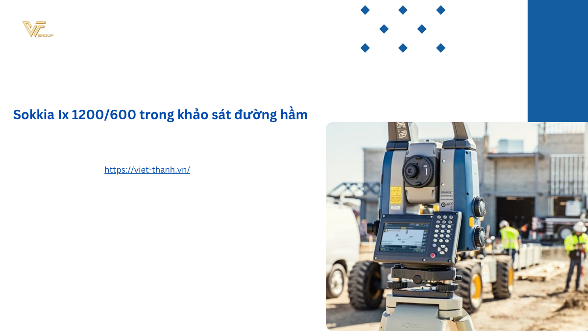 Trong ngành xây dựng cơ sở hạ tầng, khảo sát đường hầm là một trong những công việc đòi hỏi độ chính xác tuyệt đối và thiết bị đo đạc công nghệ cao. Với yêu cầu khắt khe về độ ổn định, khả năng làm việc trong không gian hẹp, thiếu sáng và điều kiện địa hình phức tạp, việc lựa chọn thiết bị trắc địa phù hợp là yếu tố then chốt quyết định chất lượng dự án. Trong đó, máy toàn đạc Sokkia iX 1200/600 nổi bật như một giải pháp khảo sát thông minh, hiệu quả và chính xác cao trong thi công và giám sát đường hầm. Việt Thanh Group sẽ hướng dẫn bạn về sokkia Ix 200/600 trong khảo sát đường hầm.