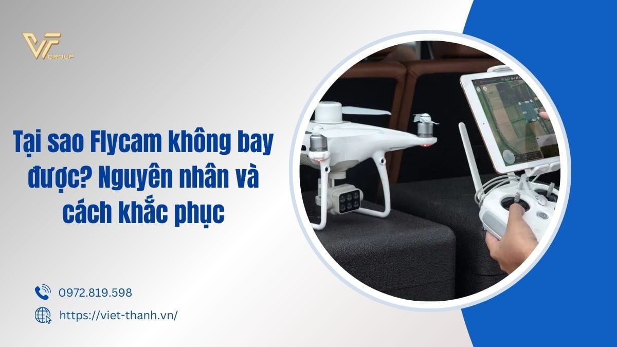 Flycam, hay còn gọi là drone, đã trở thành một thiết bị công nghệ phổ biến được sử dụng trong nhiều lĩnh vực như quay phim, chụp ảnh, khảo sát địa hình và giám sát an ninh. Tuy nhiên, không ít người dùng gặp phải tình huống flycam không thể cất cánh hoặc bay một cách bình thường. Vậy tại sao flycam không bay được và cách khắc phục như thế nào? Hãy cùng Việt Thanh Group khám phá nguyên nhân và giải pháp trong bài viết dưới đây.