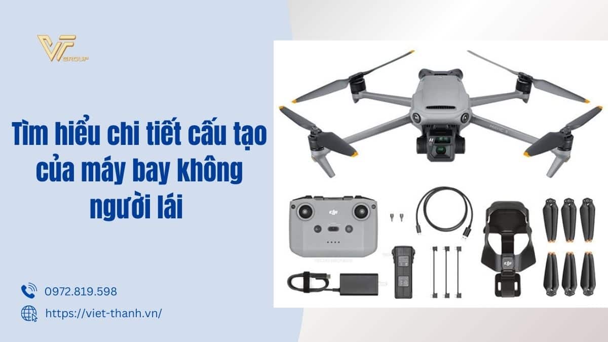 Máy bay không người lái là một thiết bị có ứng dụng khá phổ biến trong cuộc sống hiện nay. Cấu tạo của máy bay không người lái gồm có khung, động cơ, pin, hệ thống điều khiển, cảm biến,.. Trong bài viết dưới đây Việt Thanh Group sẽ giới thiệu chi tiết về cấu tạo của máy bay không người lái, mời bạn đọc cùng theo dõi.