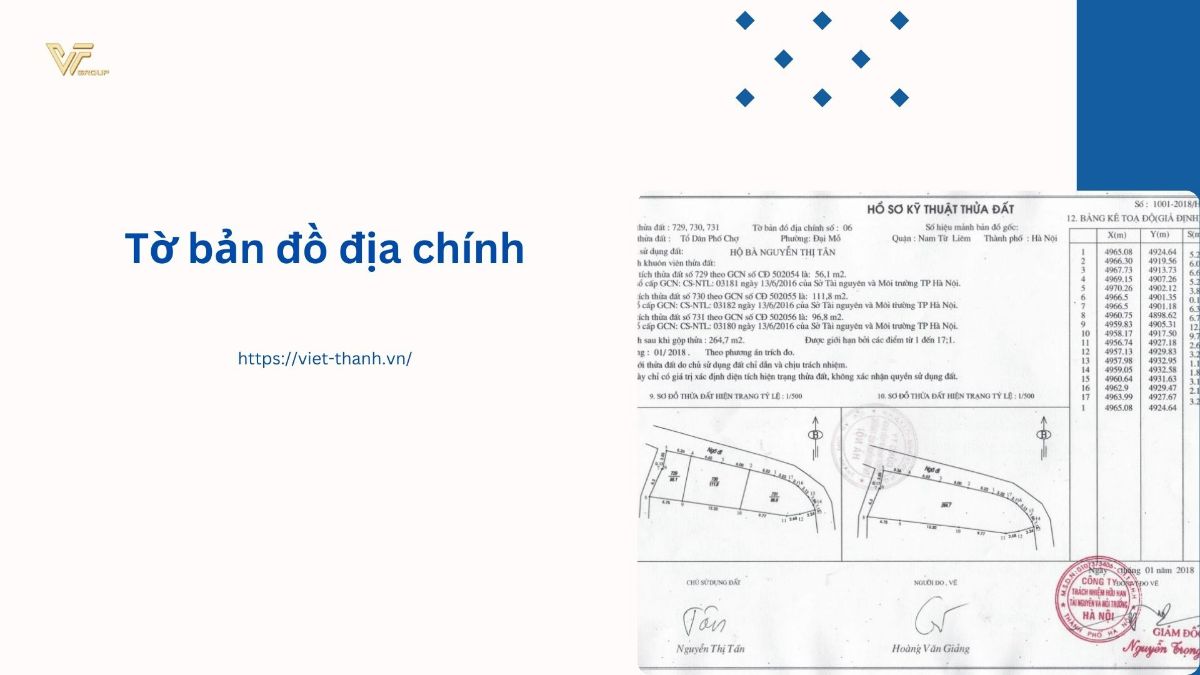 Tờ bản đồ địa chính là một trong những công cụ quan trọng trong quản lý đất đai, giúp ghi nhận và hiển thị thông tin chi tiết về ranh giới, diện tích, chủ sở hữu của các thửa đất. Đối với nhiều người, đặc biệt là những người làm việc trong lĩnh vực đất đai hoặc quy hoạch, hiểu rõ về tờ bản đồ địa chính là điều cần thiết. Hãy cùng Việt Thanh Group khám phá khái niệm, vai trò và ứng dụng của tờ bản đồ địa chính trong thực tế.