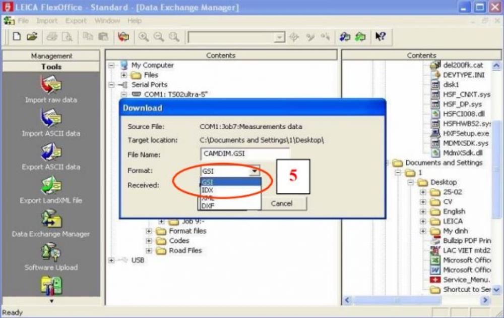 Hướng dẫn trút dữ liệu từ máy toàn đạc Leica sang máy tính