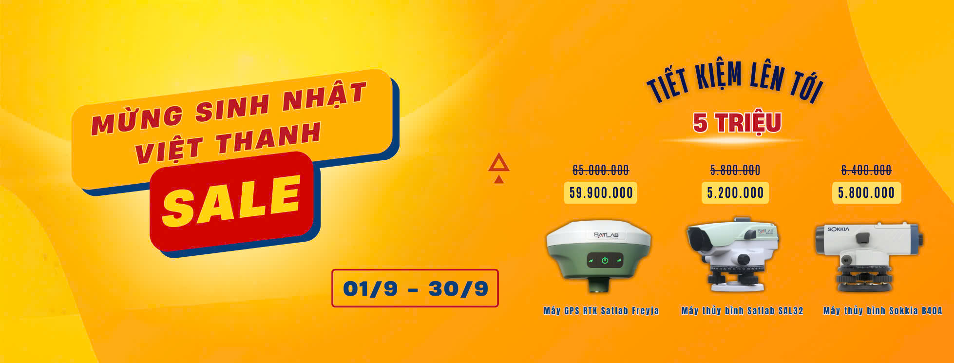 Chào mừng sinh nhật lần thứ 3, Việt Thanh Group triển khai chương trình “SIÊU SALE MỪNG SINH NHẬT” như một lời tri ân gửi tới quý khách hàng. Đây cũng là CƠ HỘI DUY NHẤT TRONG NĂM để quý khách dễ dàng sở hữu những dòng máy trắc địa chất lượng hàng đầu Việt Nam với mức giá cực kỳ ưu đãi.