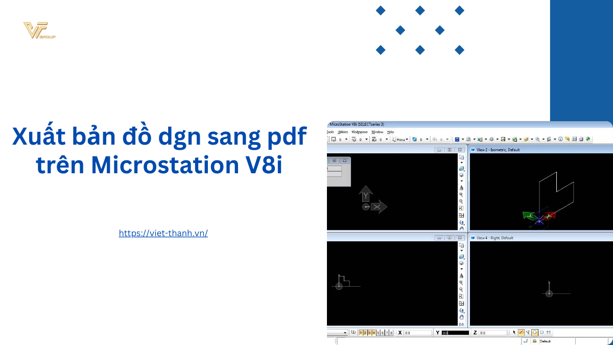 Xuất bản đồ DGN sang PDF trên MicroStation V8i là một phần mềm thiết kế CAD mạnh mẽ do Bentley Systems phát triển, nổi bật với khả năng xử lý bản vẽ định dạng DGN – định dạng chuẩn trong ngành thiết kế hạ tầng và kỹ thuật công trình. Trong quá trình làm việc, nhu cầu xuất bản đồ từ DGN sang định dạng PDF là rất phổ biến, đặc biệt trong các hoạt động trình bày, chia sẻ hoặc in ấn bản vẽ kỹ thuật. Việt Thanh Group hướng dẫn bạn chi tiết từng bước xuất bản đồ DGN sang PDF trên phần mềm MicroStation V8i, từ thao tác cơ bản đến nâng cao như xuất file hàng loạt, cấu hình tỷ lệ, thiết lập khổ giấy và đảm bảo chất lượng hiển thị phù hợp cho in ấn và công cụ hỗ trợ như máy định vị 2 tần số RTK.
